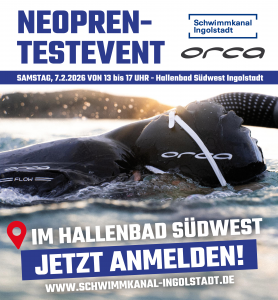 Du wolltest schon immer mehr über deinen Schwimmstil und deine Leistungsfähigkeit wissen, oder einen Neoprenanzug testen der wirklich passt? Mit dem Schwimmkanal Ingolstadt möchten wir eine High End Trainingsumgebung für unsere Athleten anbieten. Dank neuster Technik und erfahrenen Trainern, können wir vom Neoprentest bis hin zur professionellen Technik- und Leistungsanalyse alles anbieten. Der Schwimmkanal bietet die Möglichkeit, den Athleten während des Schwimmens aus 4 verschiedenen Perspektiven zu filmen und so bereits während dem Training eine genaue Analyse der Bewegungen vorzunehmen und Optimierungspotenziale zu erkennen.